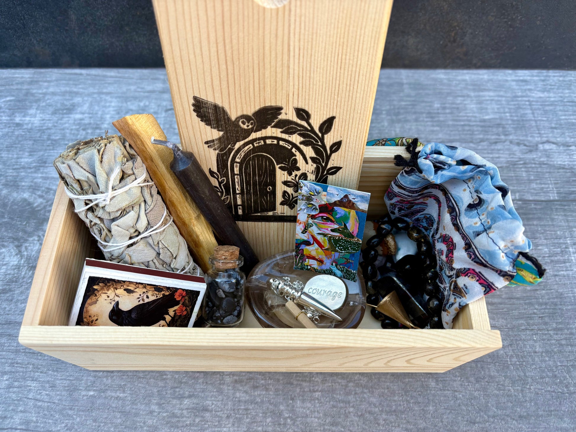 Healing treasure box masterfully curated for the specific healing intention of doing Shadow Work and Inner Journeying. The spiritual path must include going into the places we have abandoned or ignored, or the places we have not acknowledged or embraced. This is Shadow Work. It's getting to know these hidden parts of ourselves so we can bring them into the fold of who we are, with acceptance, understanding and compassion. This box will support you in doing the deep dive into yourself to bring about profound transformation.
